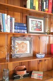 Your paneling should form the background for shelves instead of a thin piece of manmade material you see in some bookcases. Why hide pine’s beauty when you don’t need to? Bookshelves can have a formal frame around them or be flat boards supported by brackets. Either way, construct them with knotty pine wood and stain them the same color as the walls.