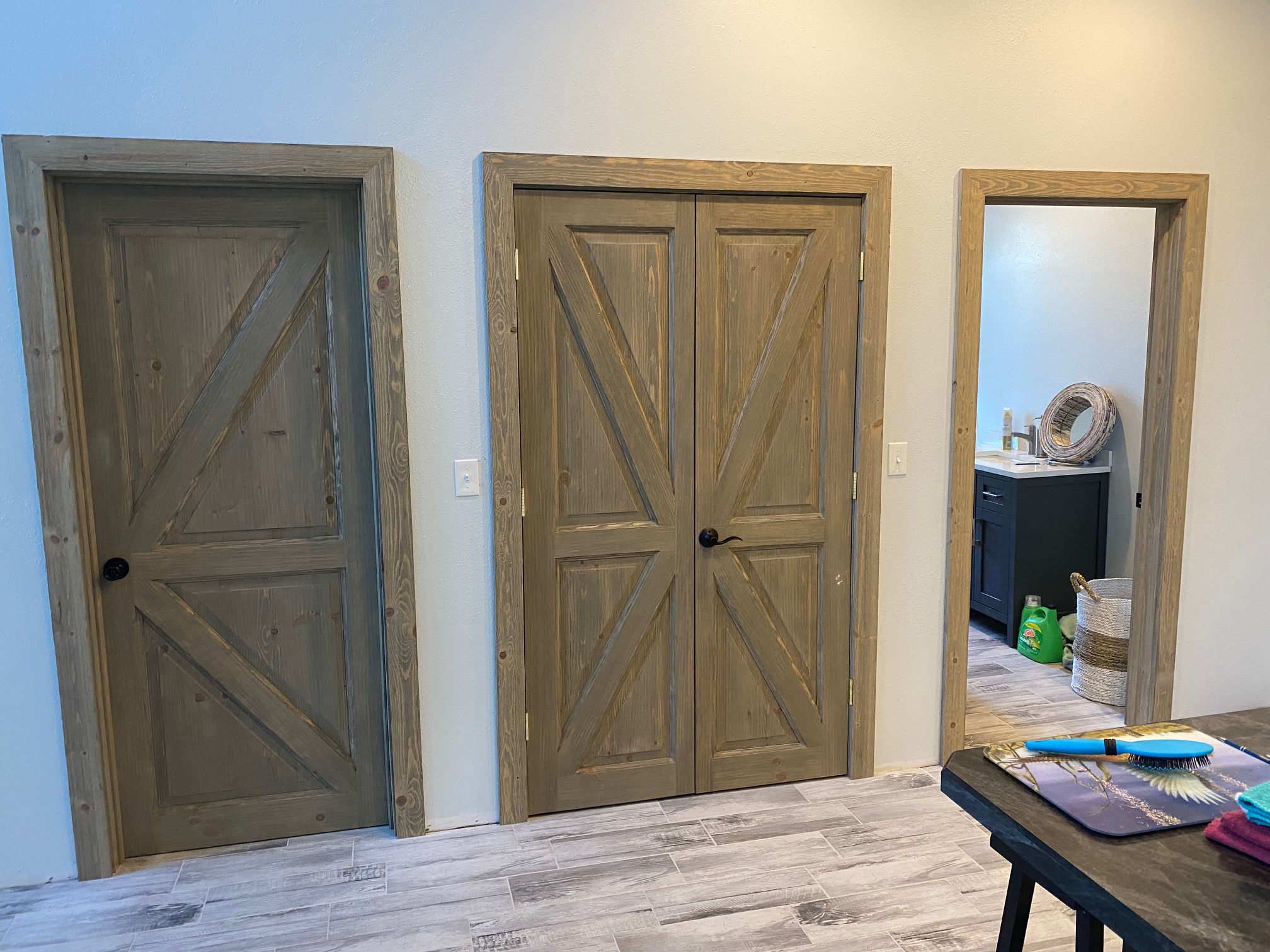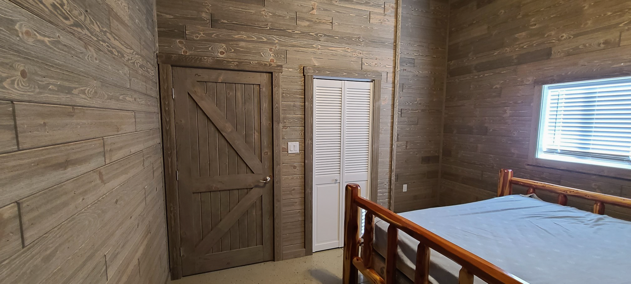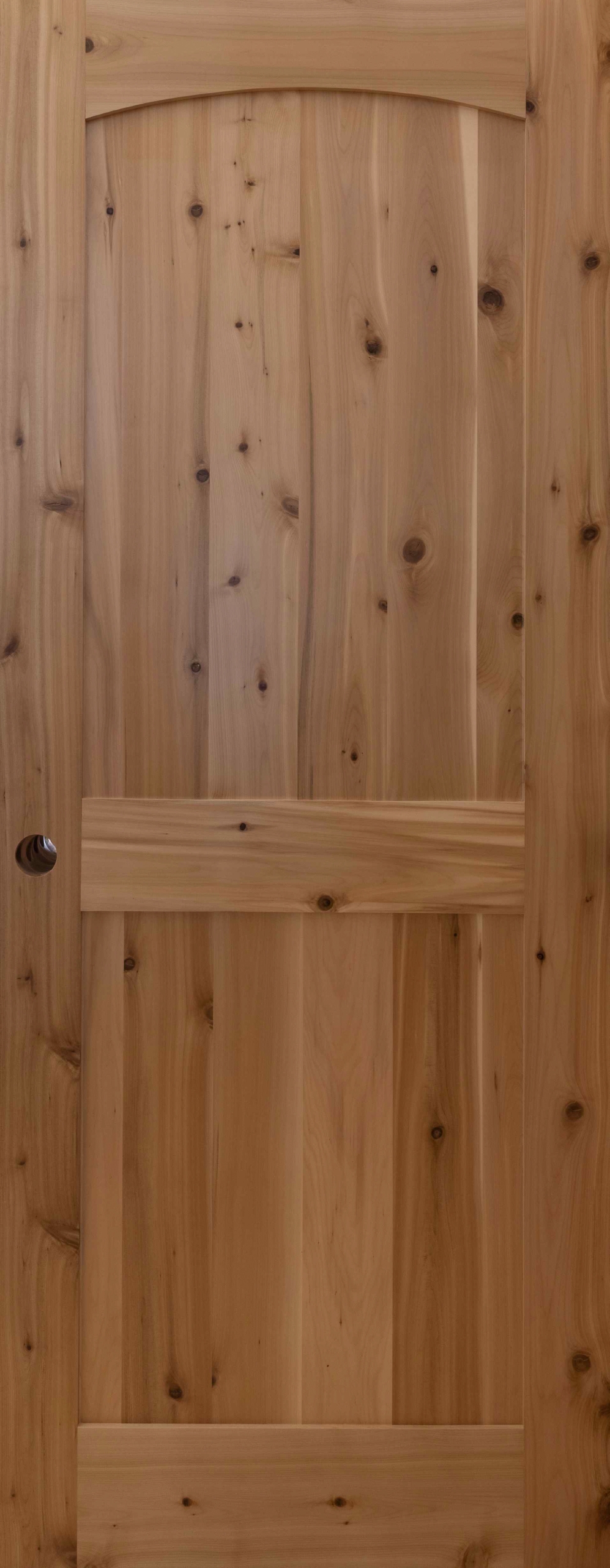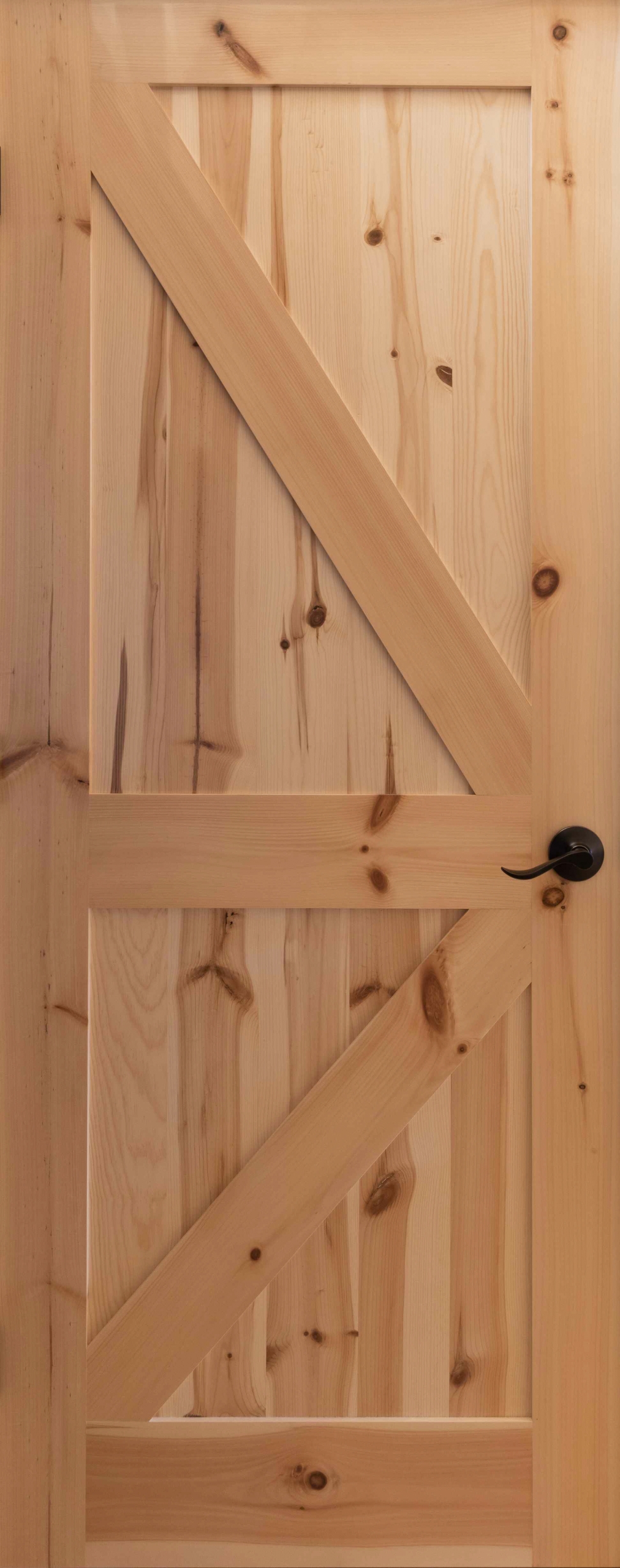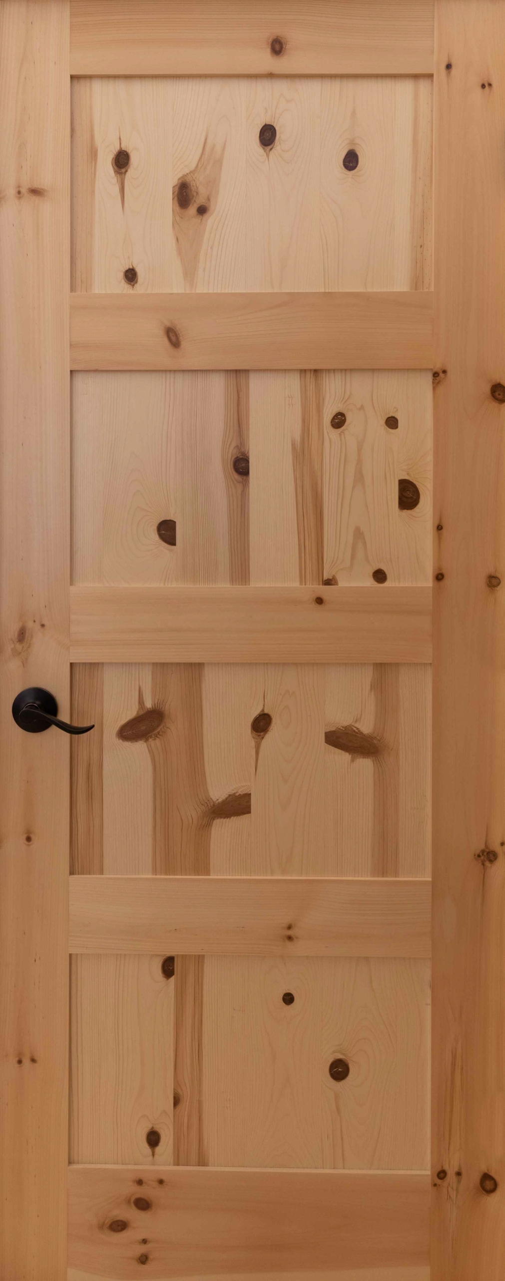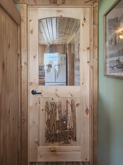 Both our custom cedar doors and our knotty pine doors look great with wood or drywall!